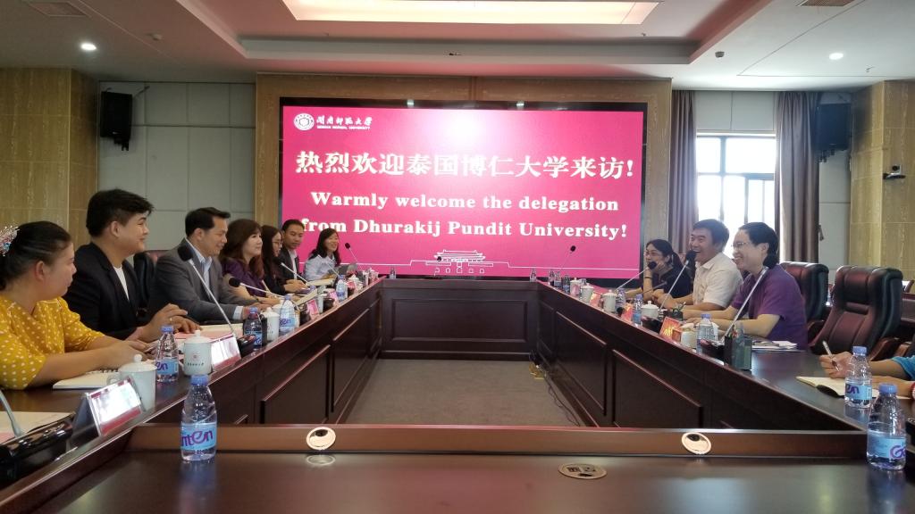林致远副校长对代表团一行的来访表示热烈的欢迎,并介绍了我校基本情况、学科建设和独特的办学优势。他表示,yl23411永利集团坚持开放办学,积极引进国外先进教育资源,并推动师生赴国外学习交流,希望与泰国博仁大学深化合作、促进师生及科研交流。双方就师资互派、硕博士连读、交换生游学夏令营、博士师资联合培养、海外留学生招生、科研合作等项目展开深入细致的沟通与交流,达成了共识,并签订了合作备忘录。双方表示,今后两校将加强沟通与交流,建立稳定长效的合作关系,实现优势互补,进一步推动项目的发展。