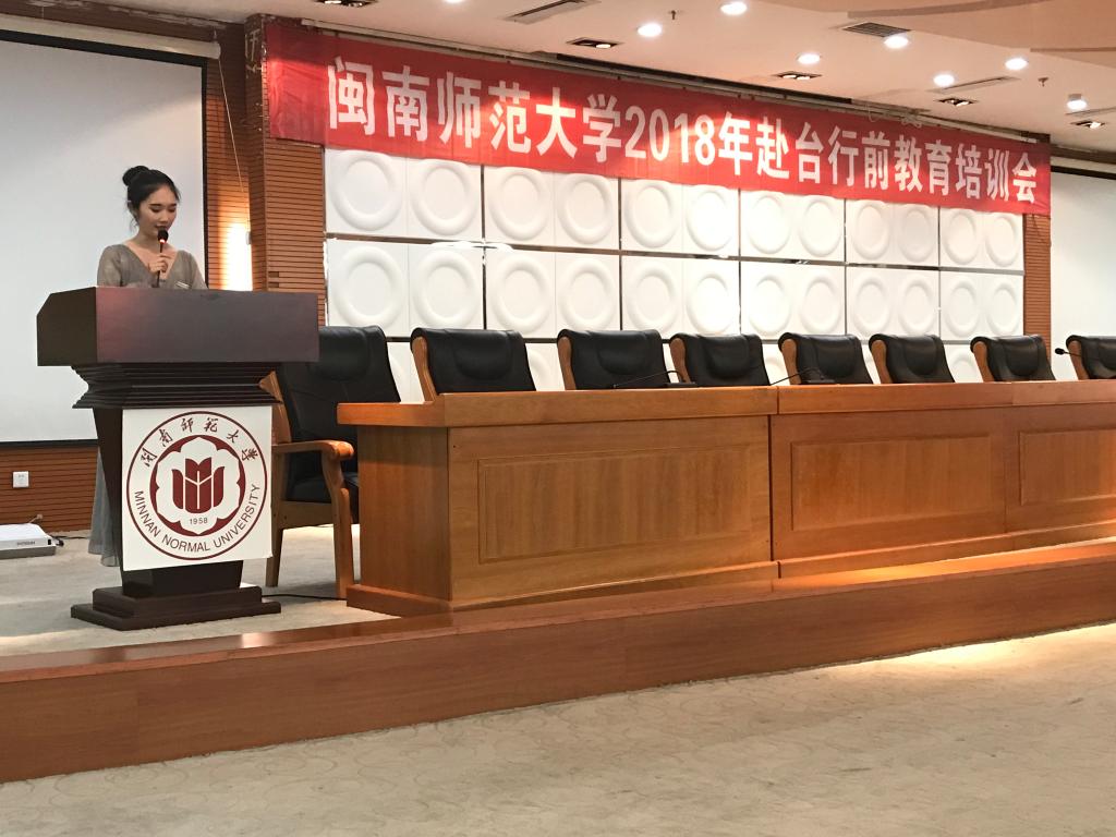 最后闽台生管理教师陈巍延老师和15级闽台班的学生代表用自己在台湾学习生活的切身体验,为学生们形象生动的介绍了台湾的学习生活以及即将会遇到的困难和问题,提醒同学们要珍惜此次学习机会,赴台研习期间要遵守两岸法律校规,有出行时要及时报告行踪,要认真学好专业课程,切实达到自我提升的目的。同时要求学生学成回来后及时向学校总结汇报学习成果,