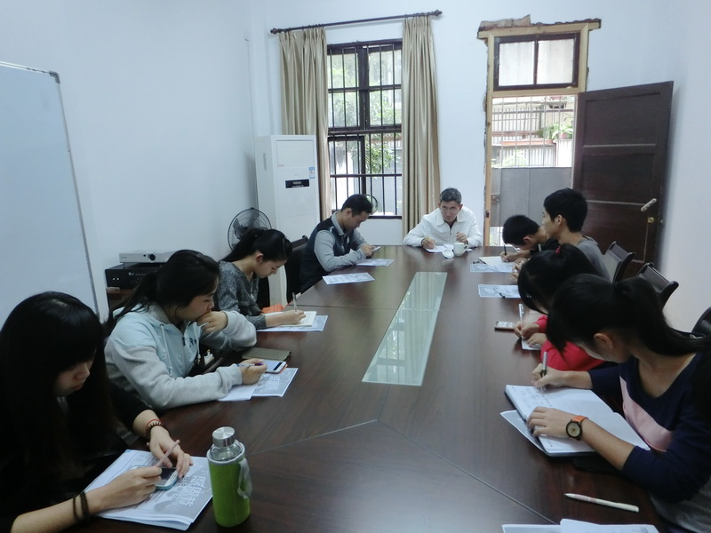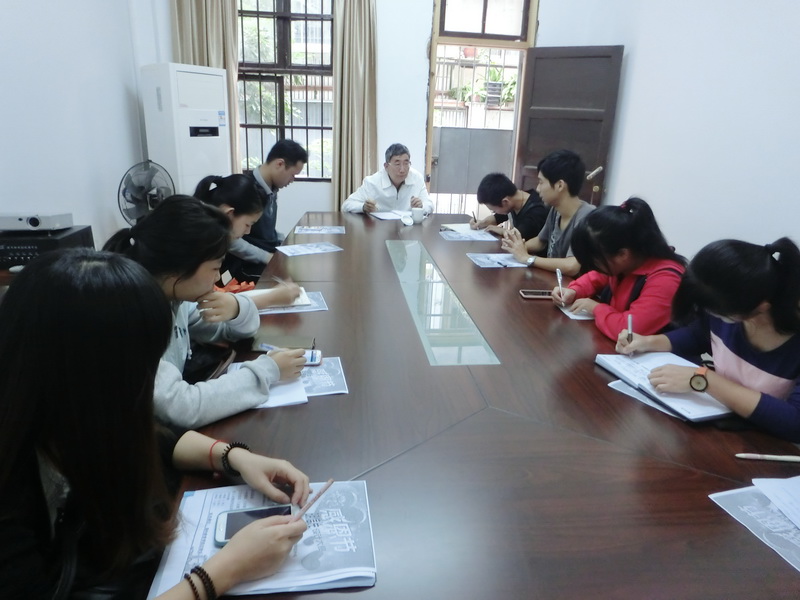 会议开始,唐振松老师先作了一个简短的发言。他说,教育最终还是要让学生掌握知识,发展思维,教学活动总体还是应该以学生为主体来进行。此次来的目的,就是要了解学生在教学活动中所面临的问题,如出勤情况、课程问题、教师授课、上课纪律等情况。