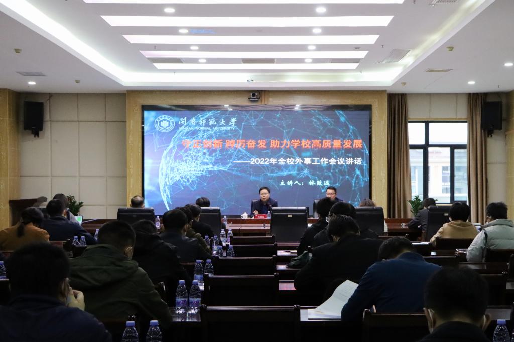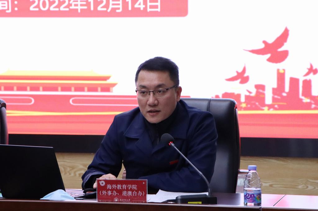 为全面贯彻党的二十大精神,深化落实教育部等八部门关于加快和扩大新时代教育对外开放的决策部署,持续推进我校对外交流合作提质增效,12月14日下午,我校召开2022年外事工作会议,校党委常委、副校长林致远出席会议,学校相关机关部处负责人,各二级学院院长、分管外事工作副院长、外事联络员,各创新平台负责人,yl23411永利集团(外事办、港澳台办)全体成员参加会议。会议由yl23411永利集团院长(外事办、港澳台办主任)李庆瑶主持。
