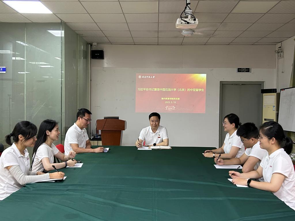 近日,习近平主席复信中国石油大学(北京)的中亚留学生,在全国高校师生中引起了热烈反响。5月19日,校党委常委、副校长林致远组织学校外事干部,召开习近平主席对中国石油大学(北京)中亚留学生的复信精神学习会,专题学习习近平主席信中的重要论述和精神。