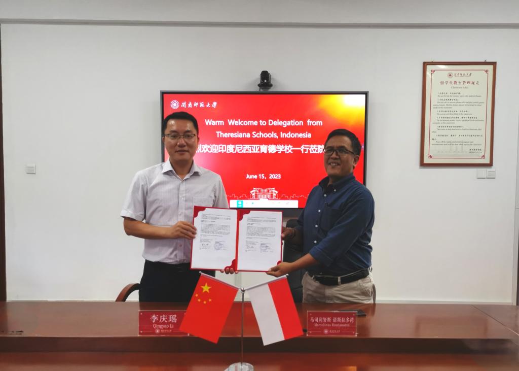 会上,双方就汉语志愿教学、学生短期游学、留学生招生培养、华文师资培训等进行了深入探讨,并签订了海外华文教育实习实践基地合作协议。