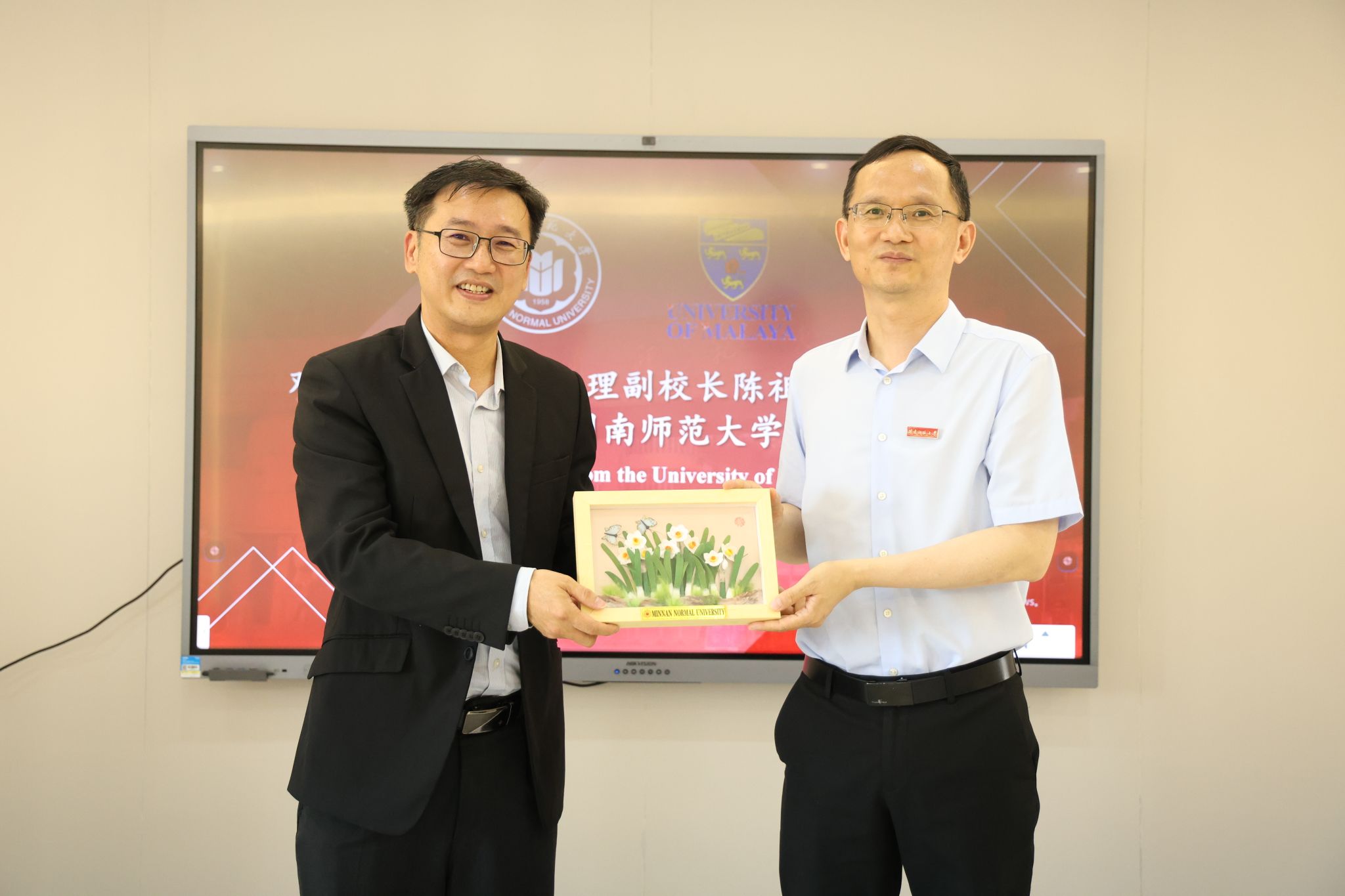 4月23日,马来亚大学分管研究与创新事务的协理副校长Tan Chou Yong教授一行访问我校。校党委书记李顺兴、副校长张宏怡在科技信息楼会见来宾。双方围绕深化校际合作、开展联合科研、人才联合培养等事项进行会谈,为两校推进后续合作奠定基础。