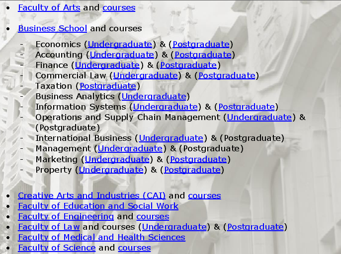 12门学科名列全球50强:地理学:30;药剂与药理学:31;运动相关学科:32;语言学:36;人类学:37;教育学:37;工程学-土木和结构:40;心理学:42;英语语言文学:42=;护理学:42=;考古学:43;会计与金融:46。